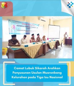 Setiap RW diminta untuk menyerahkan proposal usulan paling lambat 31 Januari 2026 mendatang dan selanjutnya proposal ini akan dibahas lebih lanjut pada Musrenbang Kecamatan Lubuk Sikarah yang direncanakan akan dilaksanakan pada 3 Februari 2026, papar Budi. (Billy)