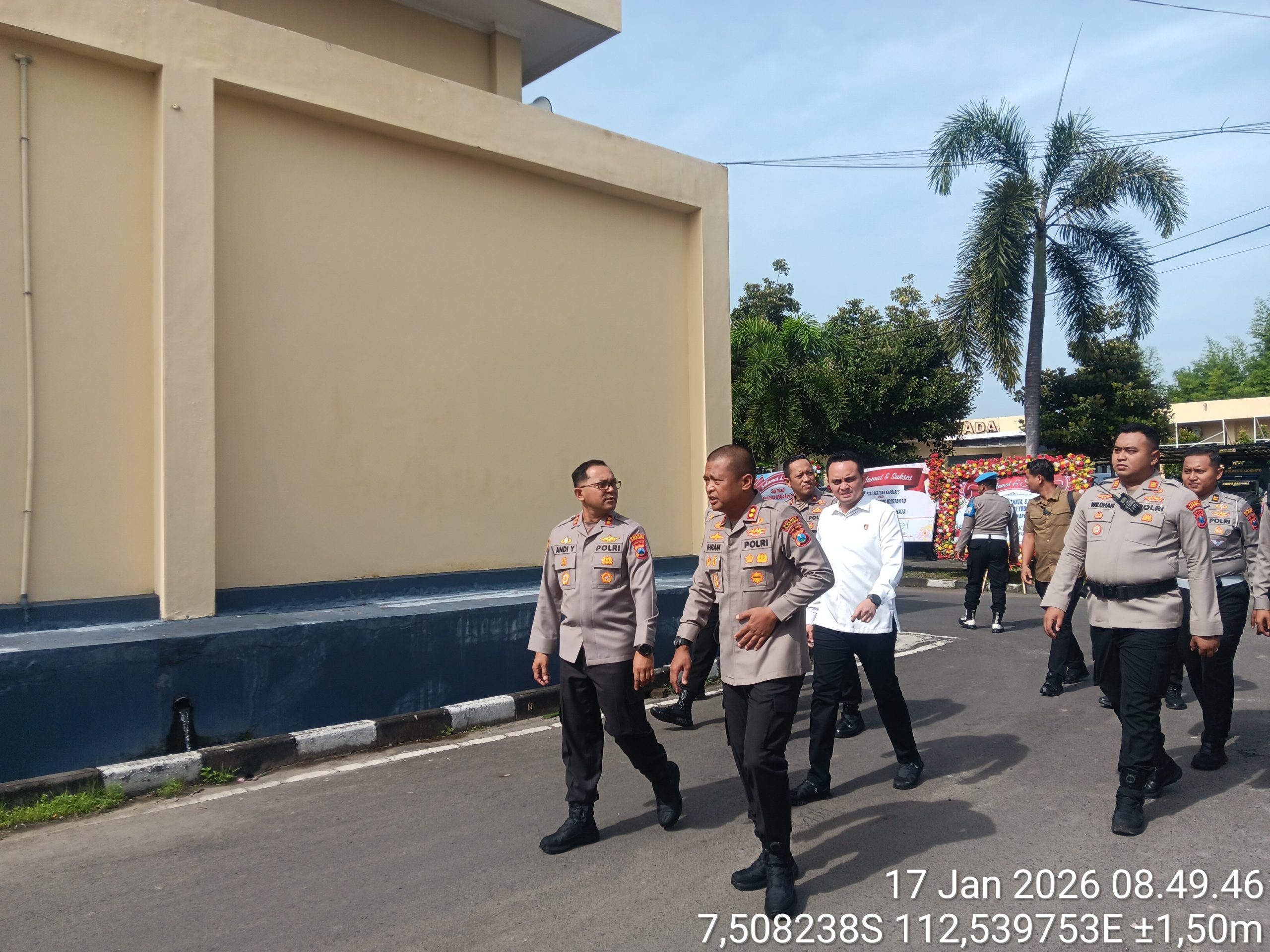 AKBP Ihram Kustarto Dampingi Kapolres Baru AKBP Andi Yudha Pranata Tinjau dan Kenali Mako Polres Mojokerto