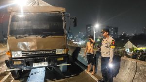 “Kendaraan truk mengalami pecah ban, sehingga untuk mengantisipasi kemacetan di atas fly over Pesing, kami menutup sementara jalur dan mengalihkan kendaraan ke jalan bawah,” jelas Ipda Michael T.P. Simbolon, Senin, 20/10/2025.