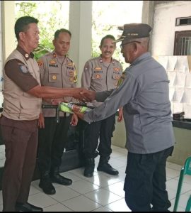 Dalam kegiatan tersebut juga Kapolsek Kotabaru IPTU Suherlan SH memberikan sarana pendukung dalam tugas kepada para linmas yaitu rompi, tongkat dan senter”