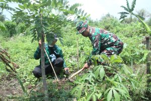 Anggota Koramil 1002/Cimalaka Dipimpin Peltu Oleh Soleh Melaksanakan Kegiatan Penanaman Pohon Jagung Hibrida dan Pohon Sukun