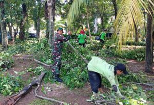 Babinsa Koramil 01/Menteng Bersama PPSU Bersihkan Ranting Pohon di Taman Amir Hamzah