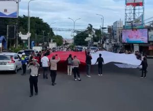 SERANG | uaraindepemdentnews.id – Puluhan mahasiswa menggelar unjuk rasa dengan turun ke jalan melalukan long march sambil membawa bendera merah putih ukuran raksasa dan spanduk berisi tuntutan penutupan tempat hiburan malam (THM) di Kota Serang.