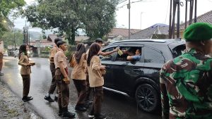 Sumedang | suaraindependentnews.id – Bulan Ramadhan yang penuh berkah ini, jelang berbuka puasa, anggota Makodim 0610/Sumedang bersama Pramuka Saka Wira Kartika bagikan takjil kepada warga pejalan kaki dan penggun kendaraan di depan gerbang Makodim sebagai bentuk kepedulian terhadap warga yang menunaikan ibadah puasa, Sabtu (8/03/2025).
