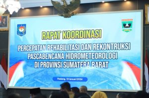 Padang, Suaraindependent.id — Menteri Dalam Negeri RI, Tito Karnavian pimpin Rapat Koordinasi Percepatan Rehabilitasi dan Rekonstruksi Pascabencana Hidrometeorologi Provinsi Sumatera Barat bersama sejumlah kepala daerah yang terdampak bencana alam tersebut.