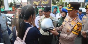 Bersama Unsur Terkait Kapolres Garut Bagikan Helm Gratis