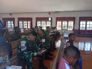 Disela – sela kegiatan ibadah, Danpos Bolakme yang diwakili oleh Praka Christian tak lupa juga memberikan bantuan Alkitab untuk meningkatkan ketaqwaan kepada masyarakat dalam beribadah.” Semoga dengan sedikit bantuan yang kami berikan ini, dapat bermanfaat dan memberikan semangat bagi masyarakat dalam beribadah.