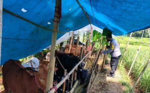 TASIKMALAYA KOTA, suaraindependentnews.id – Bhabinkamtibmas Desa Sukaraja Polsek Rajapolah Bripka Arief Firmansyah melaksanakan kegiatan pengecekan hewan Qurban dari Penyebaran Penyakit Mulut dan Kuku (PMK) di Kampung Tejamaya Desa Sukaraja Kecamatan Rajapolah Kabupaten Tasikmalaya, Rabu (29/6/2022).