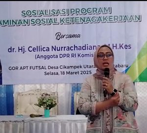 Karawang | Suaraindependentnews.com – KOTABARU , dr. Hj. Cellica Nurrachadiana, M.H Kes Anggota DPR RI Komisi IX Partai Demokrat bersama BPJS Ketenagakerjaan Kabupaten Karawang menggelar sosialisasi Program Jaminan Sosial Ketenagakerjaan.