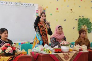 Diawal arahannya, Bunda PAUD Kota Gunungsitoli mengajak semua hadirin memanjatkan puji dan syukur kepada Tuhan Yang Maha Kuasa atas penyertaanNya sehingga dapat berkumpul di sekolah yang dicintai ini. “Periode penting tumbuh kembang anak berada di masa anak usia dini. Disinilah momen membangun fondasi pengetahuan, keterampilan serta karakter yang dibutuhkan sebagai bekal kehidupan. Rentang anak usia dini adalah 0-8 tahun, sehingga proses tersebut harus berkesinambungan sejak usia PAUD hingga SD kelas awal karena akan sangat mempengaruhi keberhasilan, kesejahteraan, keterlibatan dan sikap positip terhadap belajar yang dibangun sejak PAUD,” Jelas Bunda PAUD