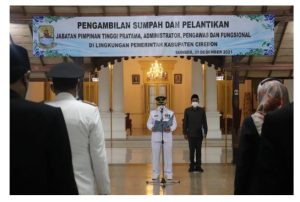 Kab.Cirebon, suaraindependentnews_id. || Usai Pelantikan dan Pengambilan Sumpah para Kuwu terpilih di Hotel Radiant Beber-Cirebon, pada sore harinya Bupati Cirebon Drs. H. Imron melantik 417 pejabat di lingkungan Pemerintah Kabupaten (Pemkab) Cirebon yang bertempat di Pendopo Bupati jalan Kartini Cirebon Kota, Jumat (31/12/2021)