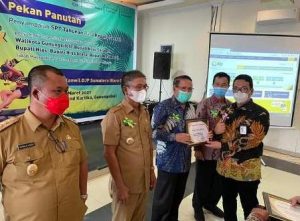 Bupati Nias Barat Faduhusi Daely, S.Pd.,MA.,MM bersama KDH se-Kep Nias terima penghargaan dari Kepala Kanwil DJP Sumut II atas penyampaian SPT tahunan, bertempat di Grand Kartika Gunungsitoli,Sumatera Utara. Selasa (16/03)