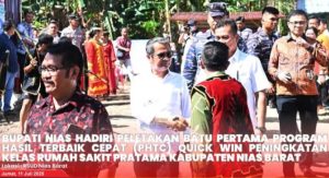 Bupati Nias, Yaatulo Gulo, S.E., S.H., M.Si menghadiri Acara Peletakan Batu Pertama (Groundbreaking) Peningkatan Kelas Rumah Sakit Pratama Kabupaten Nias Barat yang merupakan Program Hasil Terbaik Cepat (PHTC) Quick Win. Jumat, 11 Juli 2025.