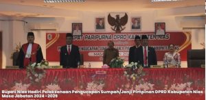 Lanjut, disampaikan bahwa dengan dilaksanakannya Pengucapan Sumpah/Janji Pimpinan DPRD Kabupaten Nias Masa Jabatan 2024-2029, maka lengkaplah sudah unsur penyelenggara pemerintah daerah Kabupaten Nias.