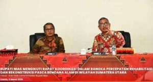 Rakor yang dipimpin langsung oleh Menteri Dalam Negeri Muhammad Tito Karnavian tersebut membahas percepatan rehabilitasi dan rekonstruksi pascabencana di Provinsi Aceh, Sumatera Utara dan Sumatera Barat, sumber Kominfo Kabupaten Nias.