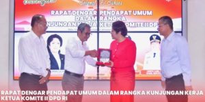 Rapat Dengar Pendapat Umum (RDPU) dalam rangka Kunjungan Kerja Ketua Komite II Dewan Perwakilan Daerah Republik Indonesia (DPD RI) Ibu Dr. Badikenita Br. Sitepu, SE., SH., M.Si beserta rombongan di Kabupaten Nias, bertempat di Aula Gido Lantai III Kantor Bupati Nias. Rabu, 09 April 2025.