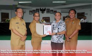 Untuk itu, Bupati Nias berharap kepada DPRD Kabupaten Nias untuk mempertajam setiap substansi dalam Rancangan Peraturan Daerah Tentang Rencana Pembangunan Jangka Panjang (RPJPD) Kabupaten Nias Tahun 2025-2045.