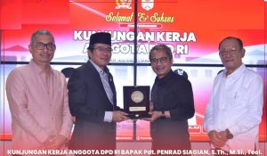 Bupati Nias Yaatulo Gulo, S.E., S.H., M.Si terima baik Kunjungan Kerja (Kunker) Anggota Dewan Perwakilan Daerah Republik Indonesia (DPD RI) Pdt. Penrad Siagian, S.Th, M.Si. Teol beserta rombongan di wilayah Kabupaten Nias, bertempat di Aula Gido Lantai III Kantor Bupati Nias. Jum’at, 11 April 2025.