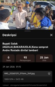 Tayangan NTV Sumbar tersebut dengan tagline, “Bupati Solok Jagolai, Bakarajolai, Kena Semprot Andre Rosiade Dinilai Lamban,” yang tayang pada tanggal 25 Januari 2026 dengan 93 penayangan, 0 suka, yang diakses pada Kamis 29 Januari 2026 Pukul 01.15 Wib.