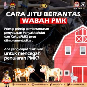 JAKARTA, suaraindependentnews.id – Prinsip-prinsip pemberantasan penyebaran Penyakit Mulut dan Kuku (PMK) terus diimplementasikan. Apa yang dapat dilakukan untuk mencegah penularan PMK?