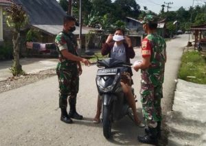 Waspadai Penularan Covid-19 di tengah – tengah Masyarakat Personil Koramil-11/Gomo Serda A. Halawa, Pratu K. Baene laksanakan Patroli Penegakan Disiplin Masyarakat di jalan umum Kecamatan Gomo Kabupaten Nias Selatan. Selasa (06/09/2022).