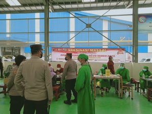 REMBANG,Suaraindependentnews.id-Polres Rembang menggelar berbagai rangkaian aksi kemanusiaan salah satunya adalah vaksinasi massal bagi masyarakat dalam rangka menyambut Peringatan HUT Bhayangkara ke-75. Kegiatan tersebut bertempat di Pabrik pembuatan sepatu PT. PWA Rembang, pada Sabtu (19/6/2021).