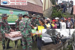 Kegiatan berlangsung dengan penuh keakraban, disambut hangat oleh masyarakat sekitar, dan menjadi bukti nyata sinergi TNI bersama rakyat. (Yonif 125/Si’Mbisa)