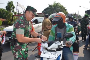 “Kegiatan pembagian bendera merah putih kali ini sebanyak 300 buah bendera dan kami bagikan kepada para pengguna kendaraan roda dua maupun kendaraan roda empat yang melintas di depan Makodim 0735/Surakarta.”imbuhnya.