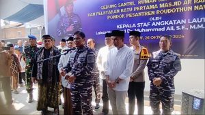 GARUT-JABAR || suaraindependentnews.id – Berkomitmen untuk memberikan manfaat yang besar bagi masyarakat, TNI AL dalam hal ini Kepala Staf Angkatan Laut (Kasal) Laksamana TNI Dr. Muhammad Ali meresmikan Gedung Santri, Rumah Singgah Santri Lansia dan peletakan batu pertama Masjid ArRahman Ar-Rahim di Pondok Pesantren Roudhotun Nawawi Desa Lebak Agung, Kecamatan Karang Pawitan, Kabupaten Garut, Jawa Barat, Sabtu 26 Oktober 2024.