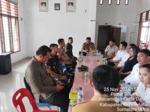 Pada acara rakor tersebut turut dihadiri Camat Teluk Dalam, Kapolsek Teluk Dalam, AKP. Zulkarnaen S.H., Danramil-12/Teluk Dalam, Mayor Inf Yus Waruwu S.E bersama Babinsa Koramil-12/Teluk Dalam.