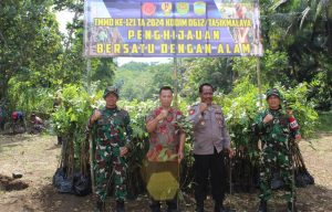 KABUPATEN TASIKMALAYA-JAWA BARAT || suaraindependentnews.id – Danramil 1218/Cikatomas Lettu Inf Deden Abdul Wahid bersama Muspika Pancatengah, Satgas TMMD dan masyarakat Desa Pangliaran melakukan penanaman 1.000 Pohon Program TMMD Ke 121 TA 2024.