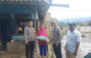 Dinding Rumah Warga Jebol Akibat Intensitas Hujan Tinggi, Kapolsek Rajapolah Datangi Lokasi Dan Berikan Bantuan Beras