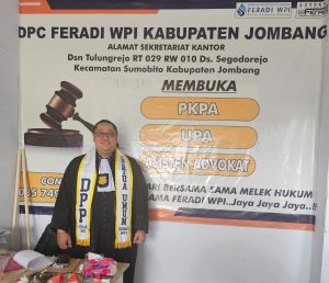 JOMBANG || suaraindependentnews.id – Advokat dan Paralegal Feradi WPI Pusat Bantuan Hukum (PBH) Feradi WPI telah mengesahkan dan membentuk serta melantik pengurus yang kemudian diserahkan kepada ketua DPC Feradi WPI Kabupaten Jombang terpilih, di kantor sekretariat Tulungrejo RT 029/010, Desa Segodorejo Kecamatan Sumabita, Kabupaten Jombang Jawa Timur pada hari Selasa 20 Agustus 2024.