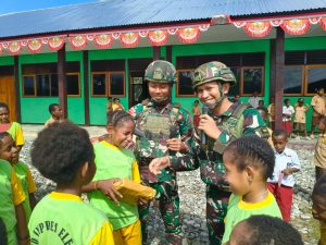 Anak Papua Cerdas terpancar dari wajah Anak-anak yang antusias menyambut kedatangan Prajurit TNI Satgas Yonif 521/DY Pos Kout Elelim yang hadir untuk memberikan motivasi menanamkan semangat kebangsaan sejak usia dini.
