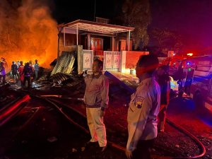 “3 Unit Damkar dan 1 tangki air BPBD dikerahkan untuk memadamkan api, dan skitar pukul 01.45 Wib Sabtu dini hari. Api berhasil dipadamkan.” Pungkas Kompol Giri.