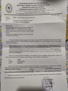 Dalam panggilan resmi yang diterbitkan PN Jakarta Selatan, para kuasa hukum PPWI — yakni Dolfie Rompas, S.Sos., S.H., M.H., Ujang Kosasih, S.H., Anugrah Prima, S.H., Yusuf Saefullah, S.H., dkk. — telah dipanggil secara resmi untuk menghadiri persidangan.