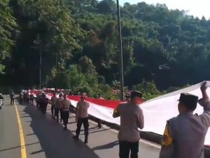AKBP Sandityo Mahardika menambahkan, “Hari ini, kita berkumpul bersama dalam kegiatan pembentangan Bendera Merah Putih sepanjang satu kilometer sebagai wujud rasa syukur dan cinta tanah air, serta pengingat akan perjuangan para pahlawan.”