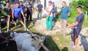 “Hewan kurban yang kita sembelih ini, dari orang-orang yang menyisihkan hartanya, dan dagingnya dibagikan kepada masyarakat”, ungkap Pasi Pers.