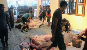 KOTA TASIKMALAYA-JABAR || suaraindependentnews.id – Kegiatan penyembelihan berlangsung di Halaman Koramil 1201/Tawang Kodim 0612/Tasikmalaya Kota Tasikmalaya, Senin,17 Juni 2024, Jumlah hewan kurban sebanyak tiga ekor sapi dan satu kambing.