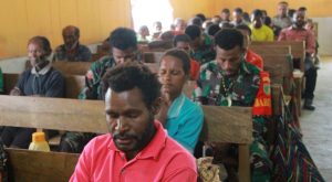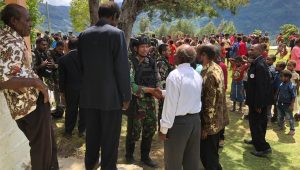 Selesai kegiatan ibadah, Aparat Keamanan Gabungan menyempatkan berkomunikasi sosial dengan segenap warga, sambil menikmati suasana gembira dan kondusif di Homeyo.
