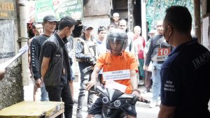 Dalam rekonstruksi tersebut, tersangka menunjukkan bagaimana mendatangi rumah korban dengan menggunakan sepeda motor lalu memasuki rumah korban