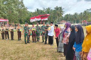 Setelah upacara selesai, dilanjutkan peninjauan kegiatan Baksos, Pengobatan massal, Pelayanan KB, Pembagian sembako dan peresmian sekaligus gunting pita hasil pelaksanaan TMMD.