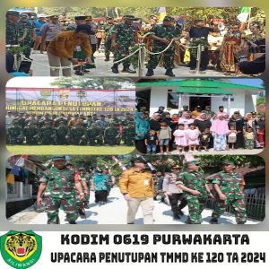 Kegiatan TMMD ke 120 Kodim 0619/PWK dengan mengambil tema Dharma Bhakti TMMD Mewujudkan Percepatan Pembangunan di Wilayah, secara resmi ditutup, Jum’at 7 Juni 2024.