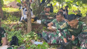 Istirahat Siang TMMD, Satgas dan Warga Makan Bersama di Kebun dengan Penuh Kesederhanaan