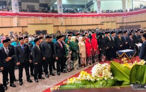Prosesi peresmian pengangkatan sumpah/janji 50 anggota DPRD Kabupaten Tasikmalaya masa jabatan 2024-2029 berlangsung khidmat, dipimpin oleh Ketua Pengadilan Negeri Tasikmalaya.