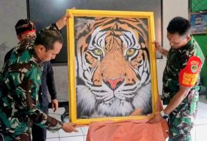 “Lukisan ini merupakan ekspresi kecintaan warga Desa Gurudug terhadap Personel TNI yang bertugas dalam Satgas TNI Manunggal Membangun Desa (TMMD) ke 120 di Kodim 0619/Purwakarta”, pungkasnya.