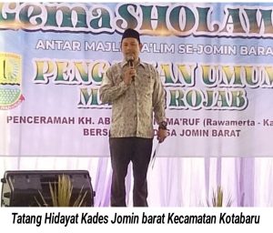 Kades Jomin barat Tatang Hidayat menyampaikan bahwa kegiatan ini dilaksanakan oleh desa berkolaborasi dengan MUI desa bertujuan dalam rangka menyiapkan generasi selanjutnya yang konsisten nya mau belajar tilawah serta bersholawat” sehingga pihak pemerintah desa Jomin barat mensupport kegiatan masyarakat ini baik itu maulid nabi atau seperti sekarang Mapag Rajab ( menyambut bulan Rajab – red ) selain dapat mencari bakat bakat dari anak anak Islam ini juga dapat menumbuhkan tali silahturahmi antara pemerintah bersama ulama tentu nya sebagai penyeimbang Pemerintah bersama ulama maka kegiatan kegiatan tersebut sepenuhnya kita delegasikan bersama ulama ( MUI desa )