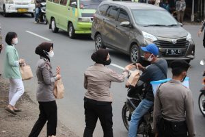 KABUPATEN TASIKMALAYA, suaraindependentnews.id – Polwan dan Kabag SDM Polres Tasikmalaya, membagi – bagikan ratusan bungkus makanan takjil untuk berbuka puasa ke masyarakat yang melintas di depan Mapolres Tasikmalaya, Jalan Raya Mangunreja Singaparna, pada Selasa (19/4/2022) sore.