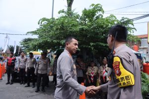 Dalam kunjungannya, Kapolres melakukan pengecekan kesiapan personel yang terlibat dalam Operasi Ketupat 2025.
