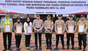 Kapolres Tasik Kota Berikan Penghargaan Kepada 7 Personel Berprestasi